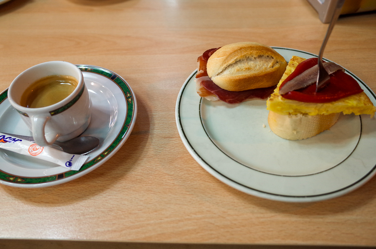 お腹が空きすぎてパンを3つくらい食べてしまいました。コーヒーを頼みましたが、出てきたのはエスプレッソ?小さなカップのコーヒーです。こっちではアメリカーノと頼まないとイメージするコーヒーは出てこないみたい。写真のコーヒーは2杯目のアメリカーノです。小さすぎて1杯では足りませんでした。パンも追加で注文したのですが、そのときに店員のおじさんが小銭を見て興奮し始めました。スペイン語だったので、何を言っているのかわかりませんでしたが、交換してもいいかと聞いているようでした。最終的には財布を渡して、好きなだけ交換してあげました。あとで調べてみると、どうやらユーロの小銭は国ごとにデザインが違うみたい。