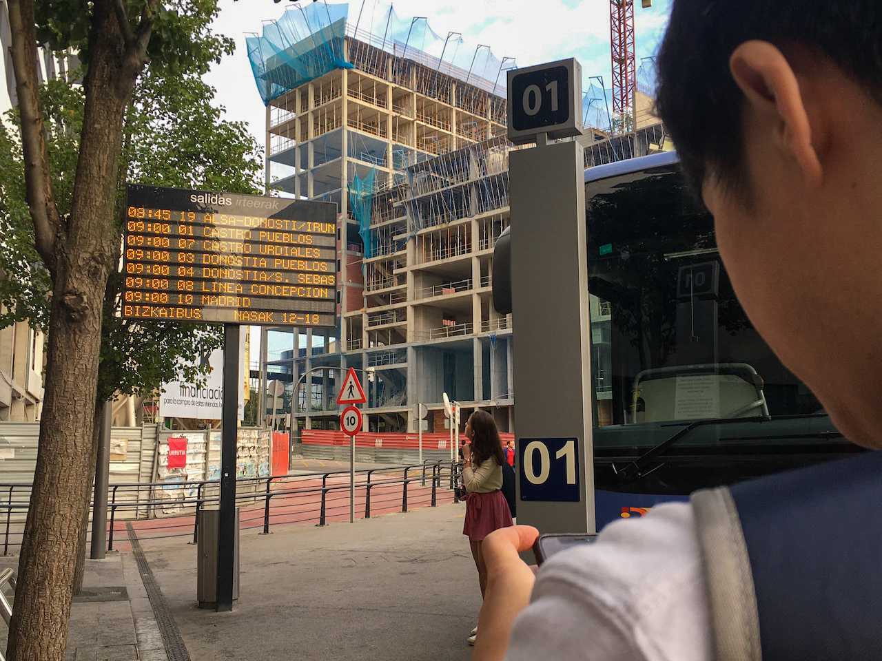 駅までバスで移動し、電車でサンセバスチャンまで戻ります。バスは Getaria -> Patxita Etxezarretaで、電車は Zumaia -> Amara-donostia。バスで降りる場所を1駅間違えて焦りました。