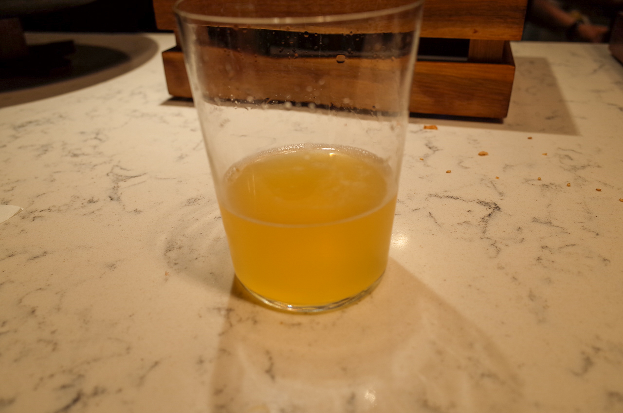 飲み物はシードラを注文。バスク地方では、シードラとチャコリというお酒が有名らしいので、まずはシードラを頼みました。りんご酒です。 こんな高いところから注いでくれます。