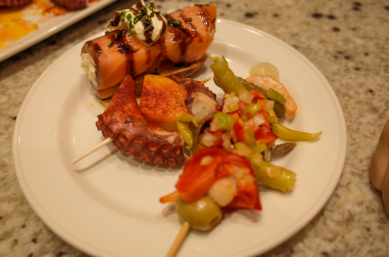 早速一軒目のバルに到着。ここはホタテの料理が美味しくて後日もう一度食べに来ました。だいぶ日本人のお客さんが多いのか、ホタテ料理の写真を指差すと、「ホタテ?」と日本語で確認してくれました。