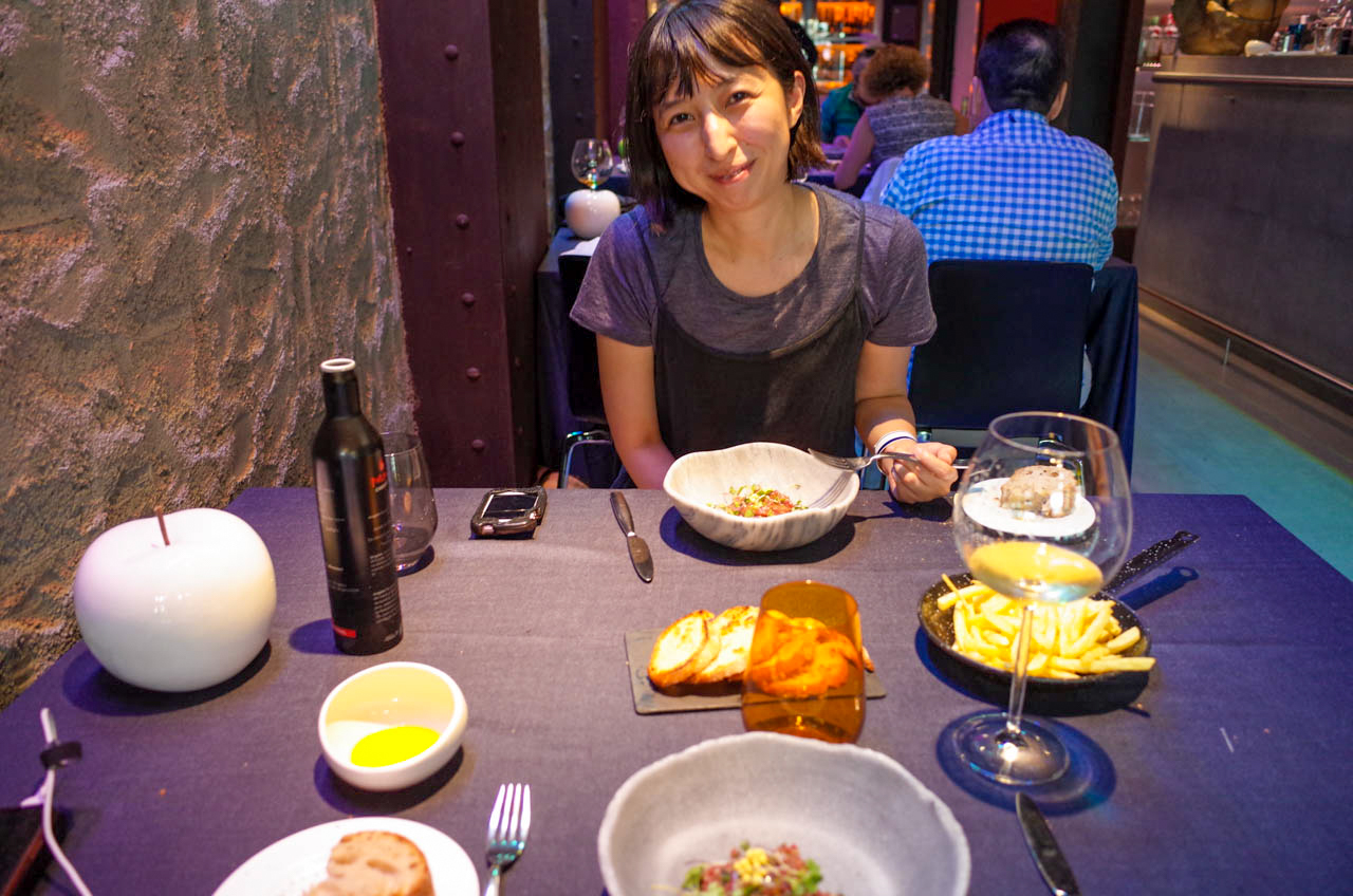 散歩している間に19時を回ったので夜ご飯へ。夜ご飯は奥さんだけ朝食を食べにきた店にしました。