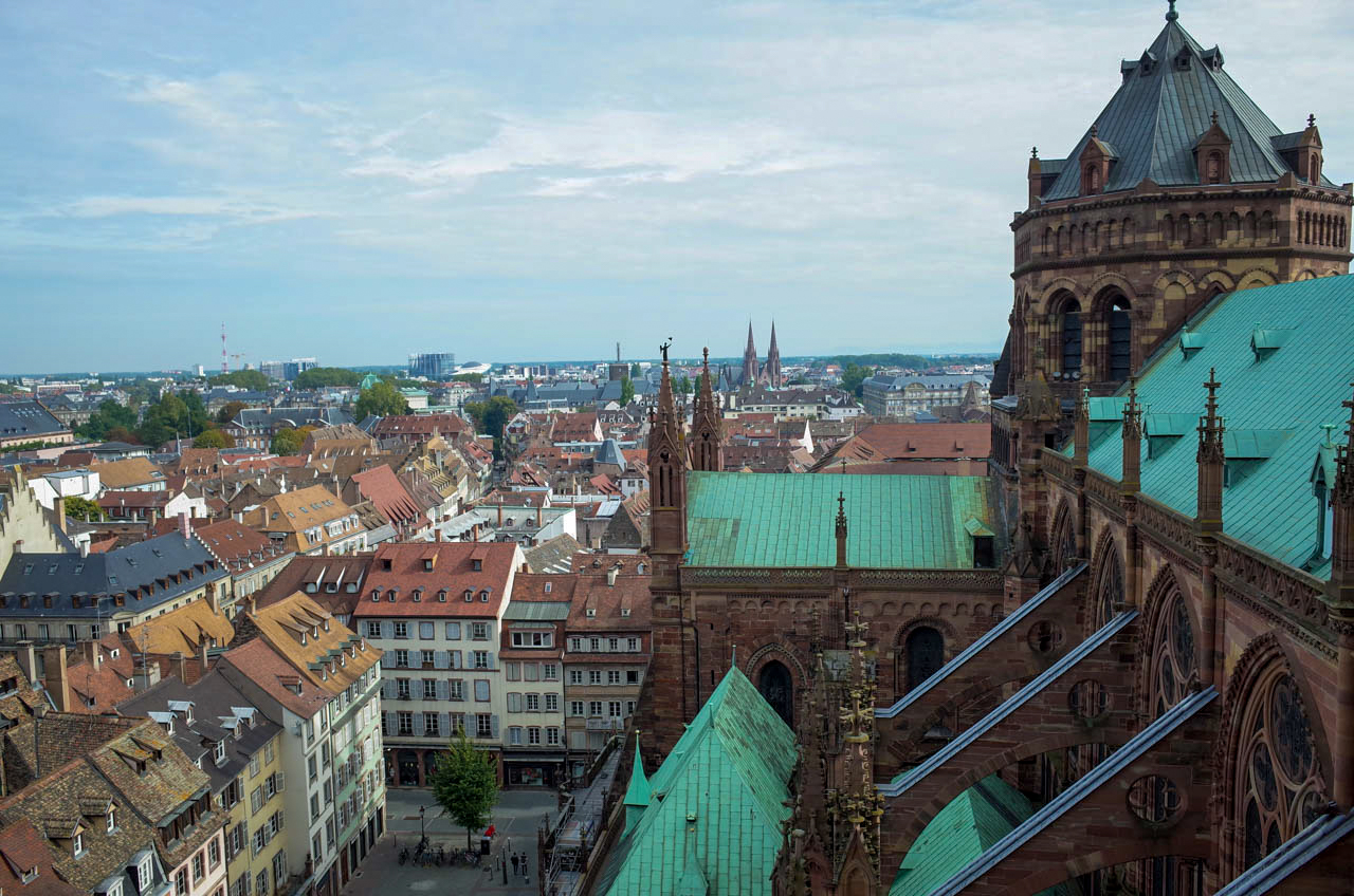 9日目は早起きして高速鉄道でストラスブール大聖堂を見に行きます。ストラスブール大聖堂は、いつかは見てみたいと思っていた場所ですが、今年発生したパリのノートルダム大聖堂の火災を見て、今回行くことに決めました。古い建物ほど壊れやすいと思うので、早めに見ておいたほうが良いだろうという判断です。また、ストラスブールは距離的には遠いけど、高速鉄道が走っているので日帰りで行けるというところも重要な点でした。インターネットで調べてみて、ストラスブールは大聖堂を見たら割とは早く飽きそうな気がしたので、近くの街、コルマールにも言ってみようと思います。