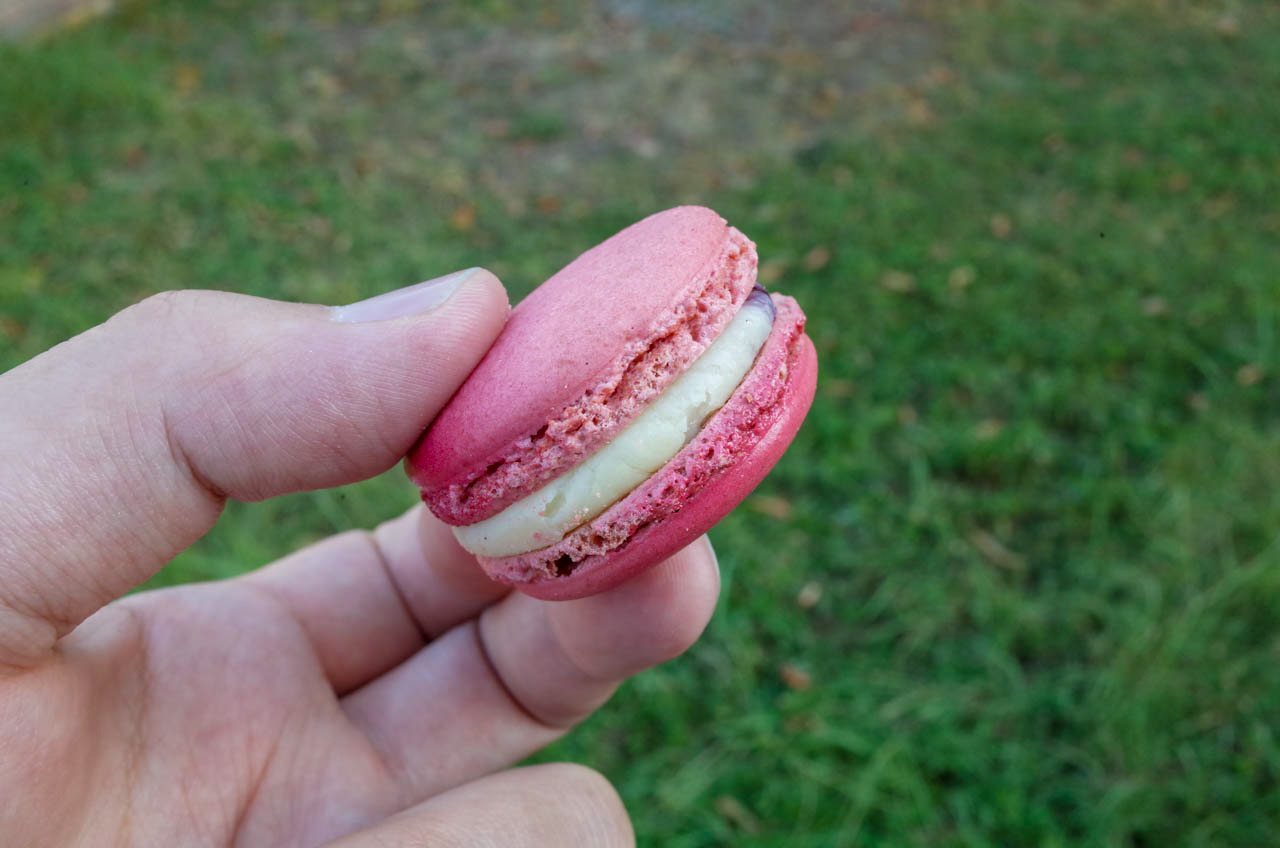 お腹が減ってきたのでおやつにマカロンを食べて街をブラブラします。